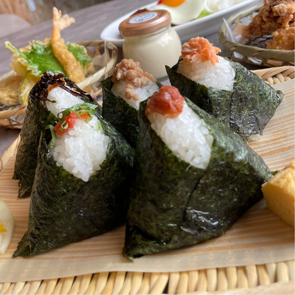 農家さんが握ったおにぎりは大きくてふんわり握られておりお米の粒も大きい!!中の具もたっぷり入っていて心もお腹も大満足なおにぎり♡